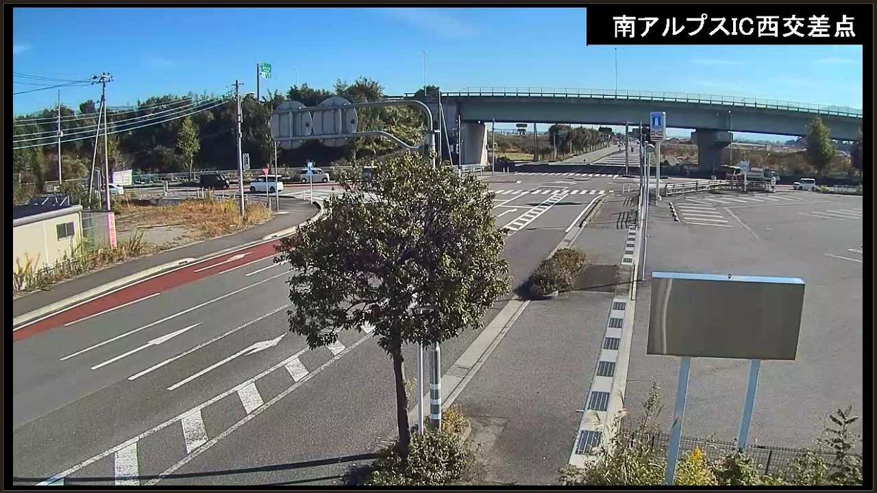 南アルプスインターチェンジ西交差点をローソン側から撮影しています。