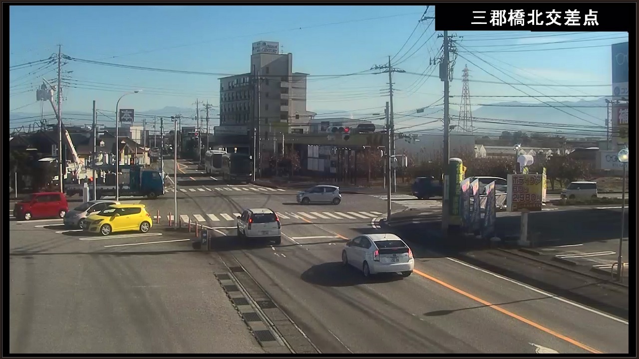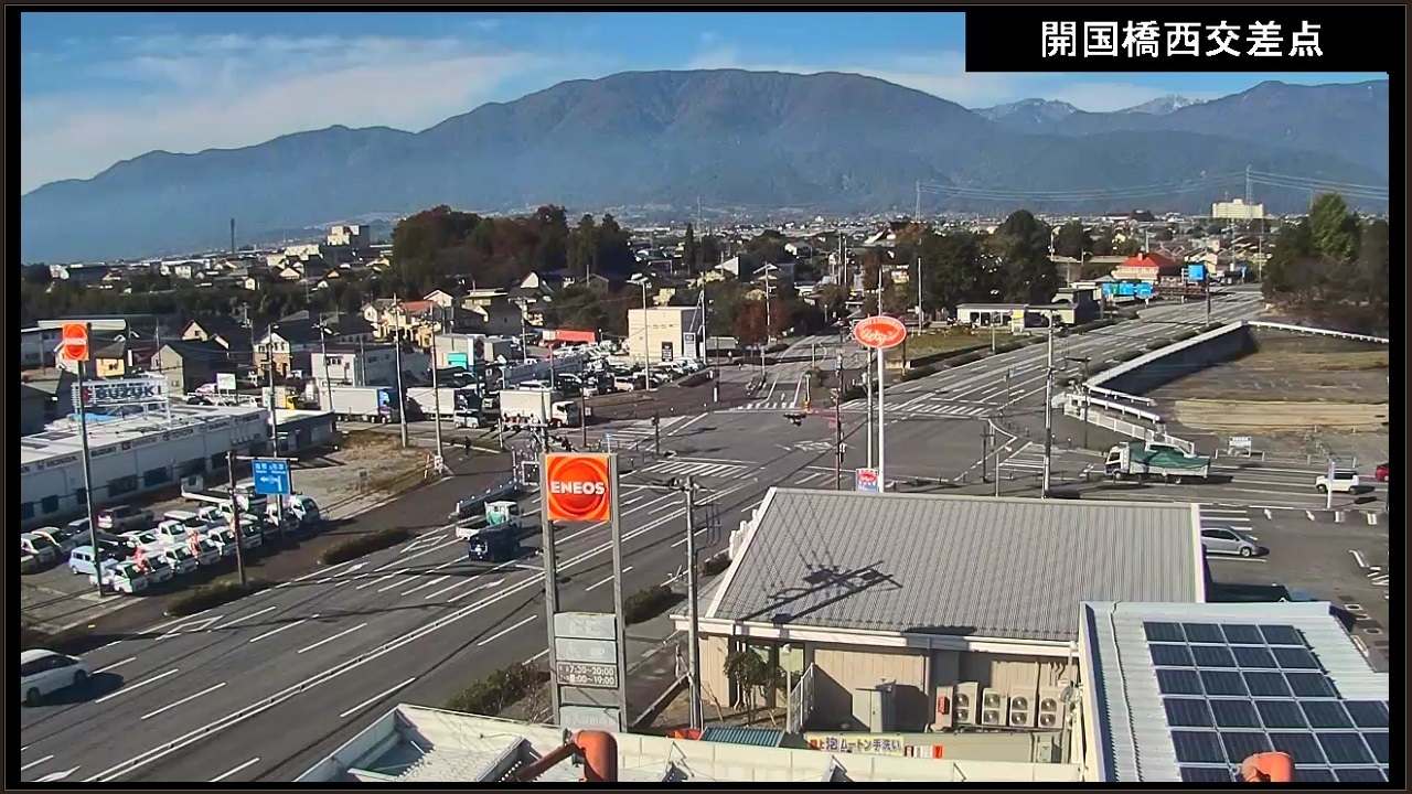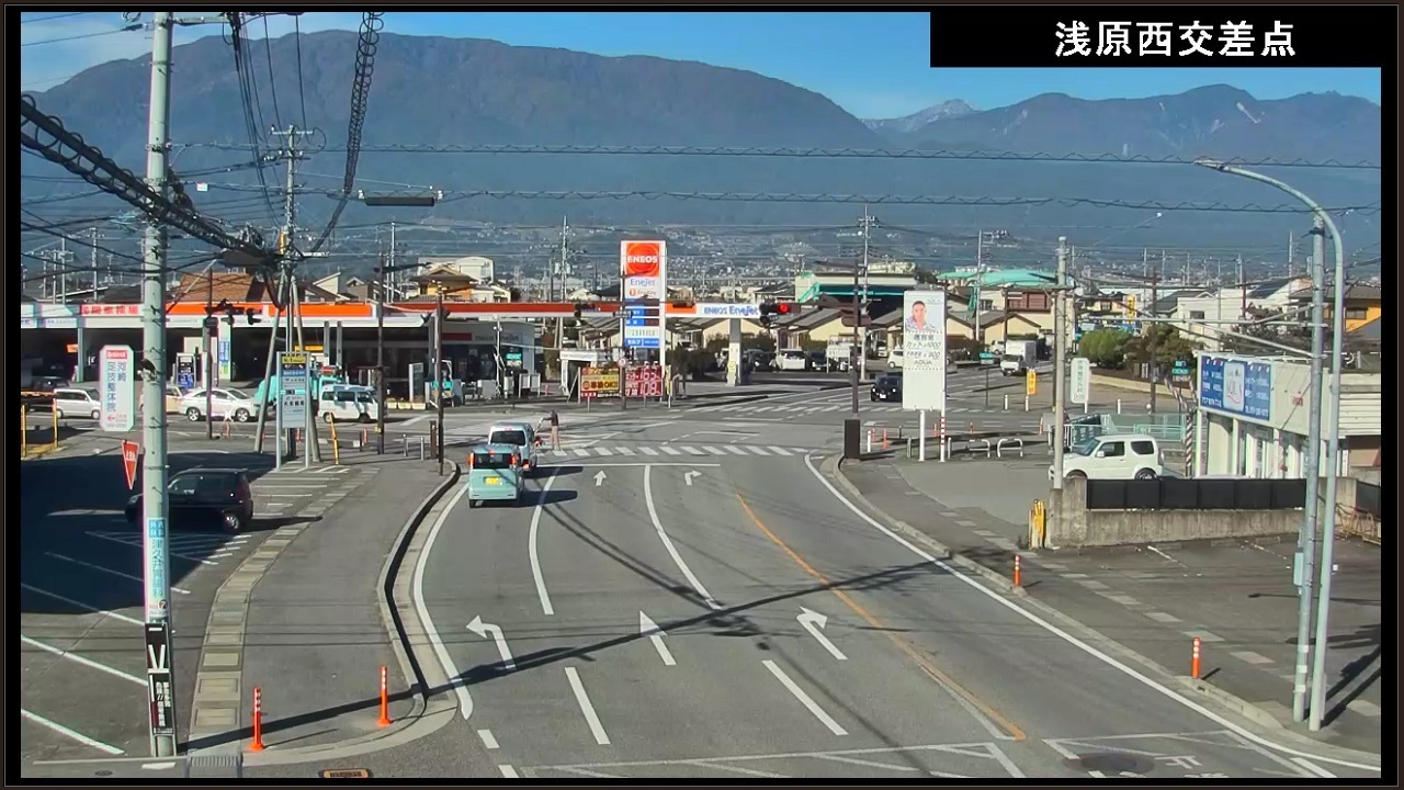 南アルプスインターチェンジ西交差点をローソン側から撮影しています。